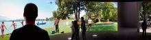 Manchmal ist es so gross, dass der Vortragende kaum mehr zu sehen ist. Aber die Leute können ihn hören und vor allem die historischen Stätten erkennen.